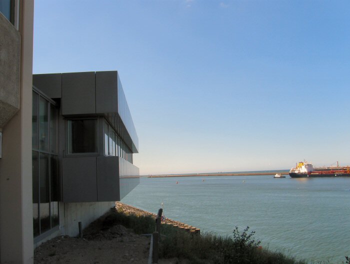 Voor het Verkeersleidingcentrum voor de haven van IJmuiden is, in samenwerking met Z+V architecten en ingenieurs, een strak en in het oog springend ontwerp gemaakt. Door het nieuwe kantoor aan de zeezijde te situeren, ten opzichte van de toren van het huidige Haven Operatie Centrum, komt het op een bestaande bunker uit de tweede wereldoorlog te staan. Zodoende zweeft het kantoor als het ware boven het duin. Opdrachtgever: Zeehaven Amsterdam